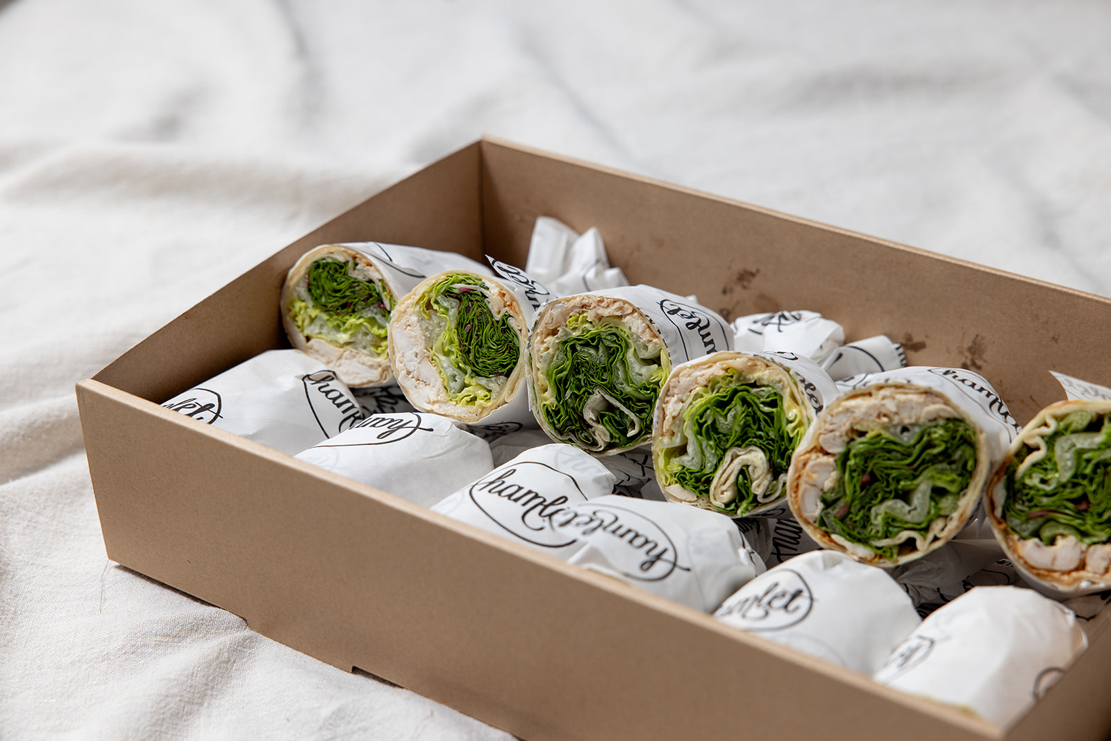 Filled with seasonal ingredients – 6 wraps per serve (12 halves)